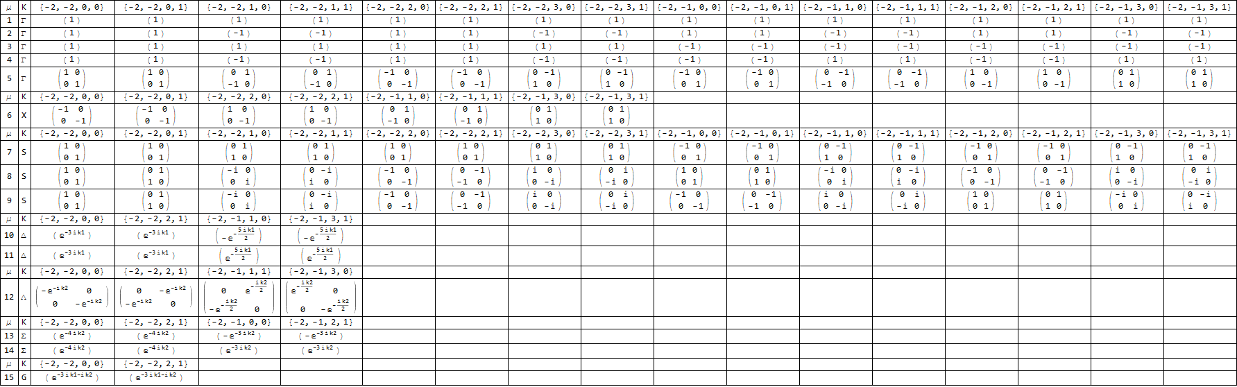 μ - POLSym Ordinal, K - Stratum, Little co-group elements (exponents in the monomial in the generators {t, tvc, S4, Θ})