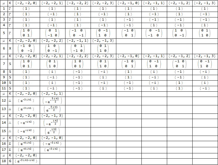 μ - POLSym Ordinal, K - Stratum, Little co-group elements (exponents in the monomial in the generators {t, tvc, S4})