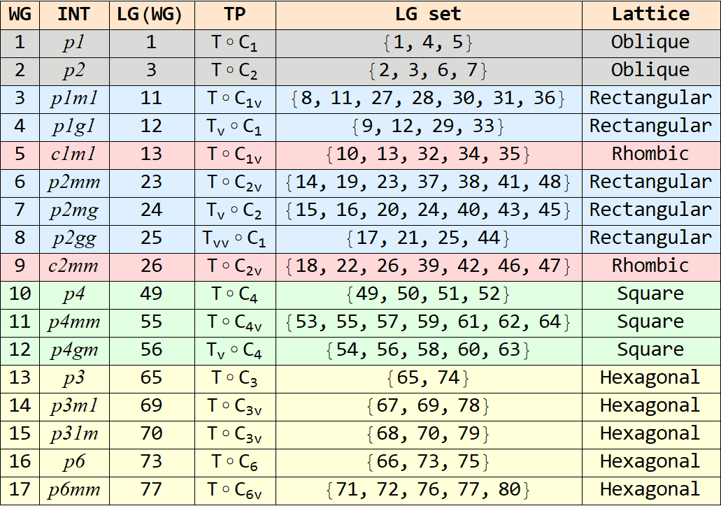 Wall-paper groups (WPG)